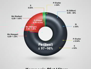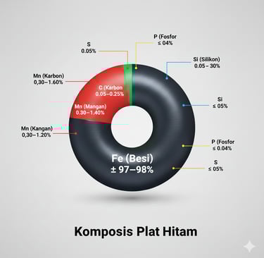 Plat HRC termasuk baja karbon rendah–menengah. Komposisinya: